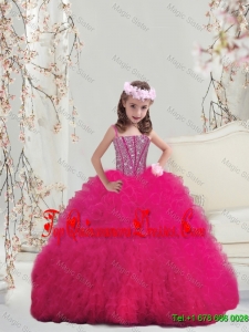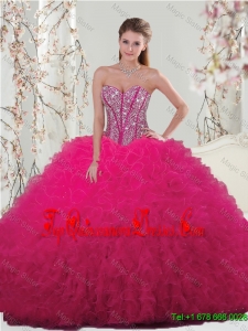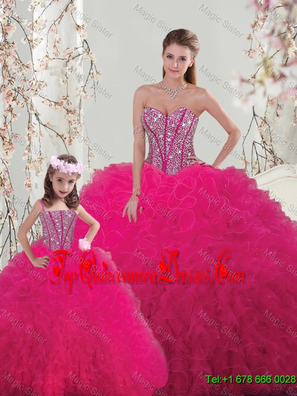 2015 Winter Classical Ball Gown Beaded and Ruffles Macthing Sister Dresses in Hot Pink