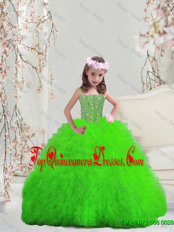 2015 Winter Popular Spring Green Spaghetti Mini Quinceanera Dresses with Beading and Ruffles