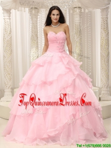2016 Beautiful Beading and Ruffles Baby Pink Quinceanera Dresses
