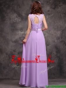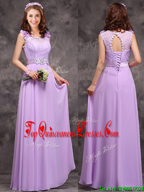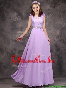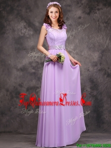 2016 Beautiful Empire Scoop Laced Decorated Bodice Dama Dress in Lavender