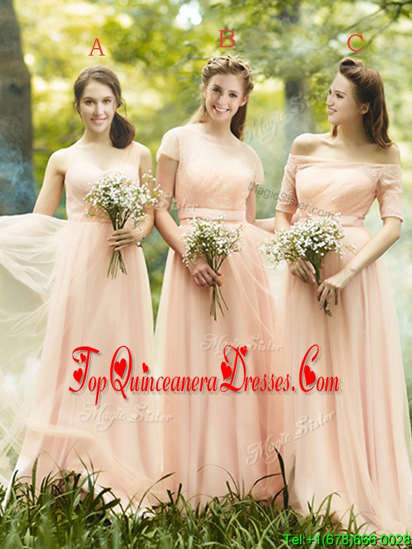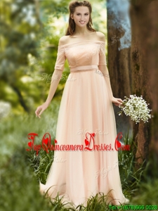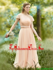 2016 Beautiful Floor Length Tulle Dama Dress in Peach