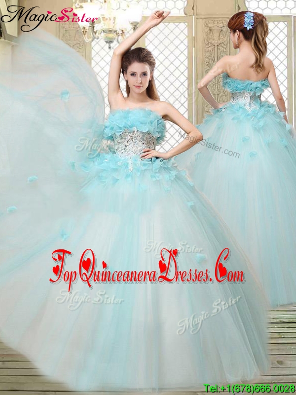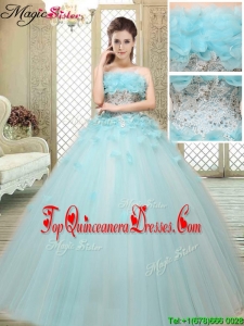 2016 Beautiful Strapless Quinceanera Dresses with Appliques and Ruffles