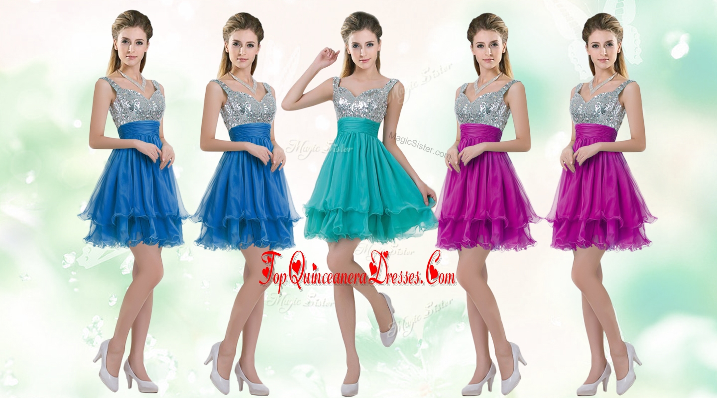2016 Beautiful Straps Short Bridesmaid Dresses with Sequins for Fall