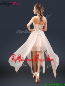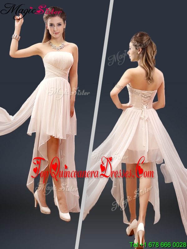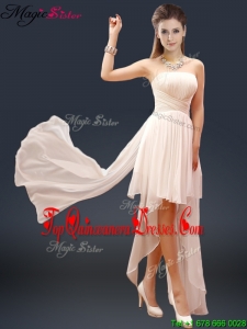 2016 Cheap Champagne Asymmetrical Dama Dresses with Ruching