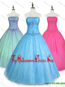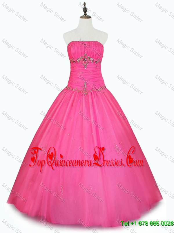 2016 Cheap Strapless Hot Pink Quinceanera Dresses with Beading
