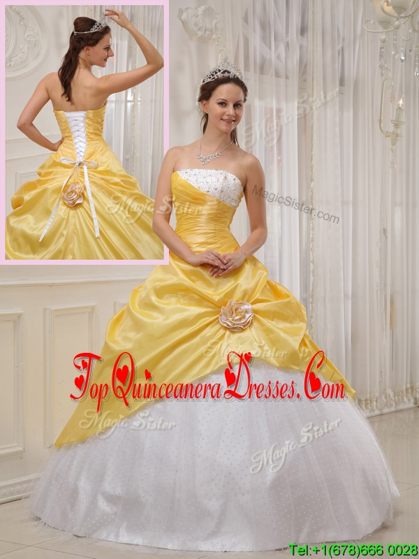 2016 Classic Yellow Ball Gown Strapless Quinceanera Dresses