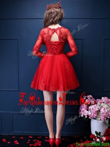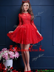 2016 Classical Scoop Three Fourth Length Sleeves Short Dama Dress with Beading and Lace