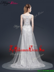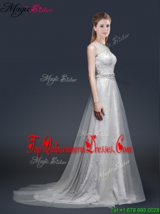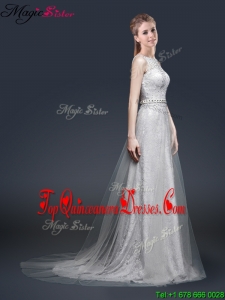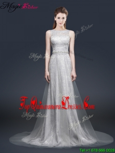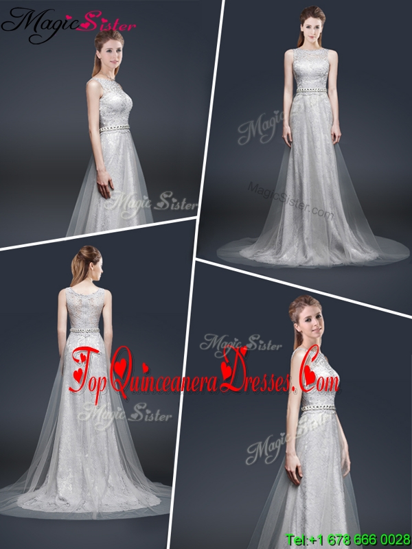 2016 Elegant Empire Bateau Dama Dresses with Brush Train