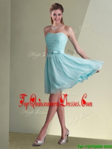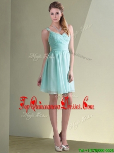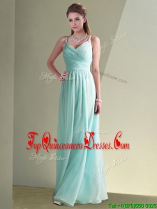 2016 Elegant Empire Ruched Decorated Chiffon Dama Dress in Aqua Blue