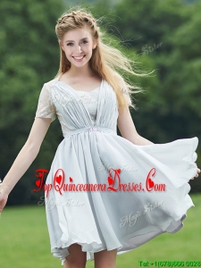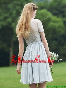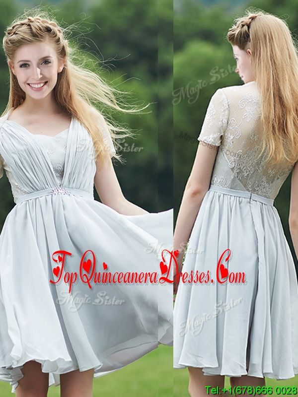 2016 Elegant Sweetheart Short Sleeves Dama Dress with Belt and Lace