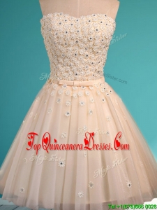 2016 Exquisite Applique and Beaded Sweetheart Dama Dress in Mini Length