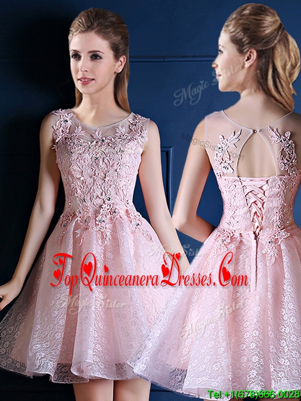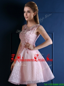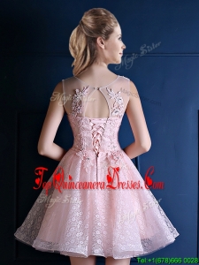 2016 Exquisite Baby Pink Scoop Dama Dress with Appliques and Beading