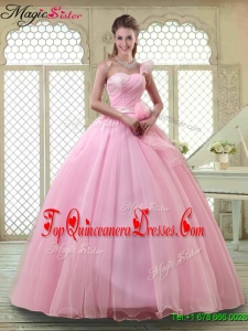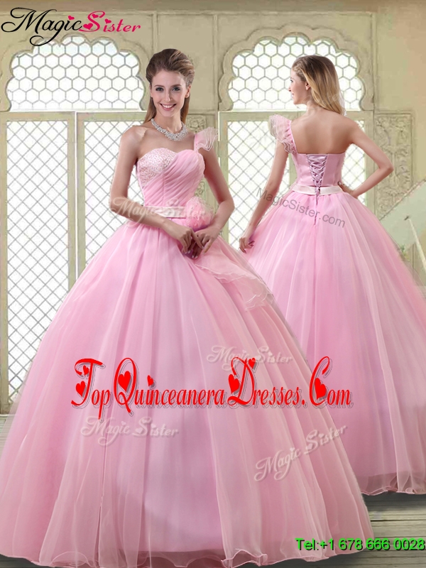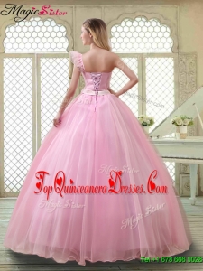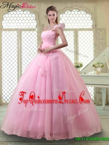 2016 Fall Lovely Rose Pink Quinceanera Dresses with One Shoulder