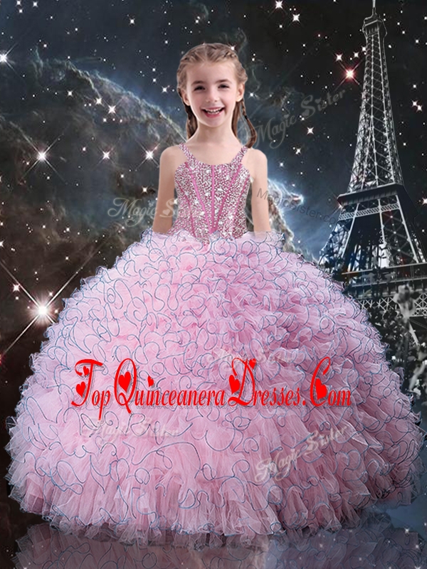 2016 Fashionable Straps Mini Quinceanera Dresses with Beading in Pink