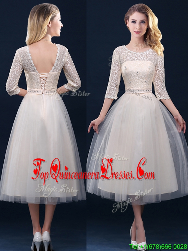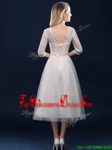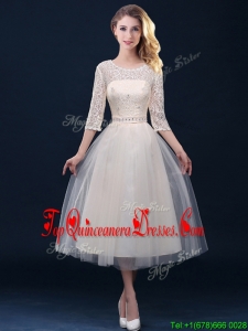 2016 Hot Sale Laced and Applique Champagne Dama Dress in Tea Length