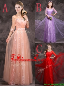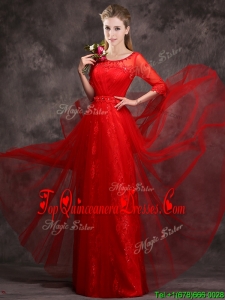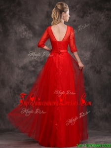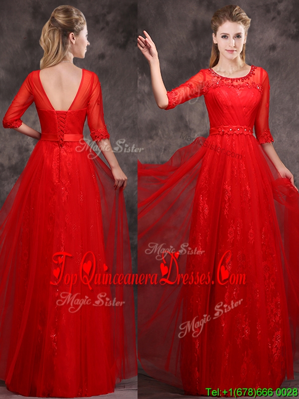 2016 Latest Applique and Beaded Red Dama Dress in Tulle and Lace