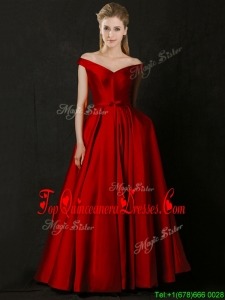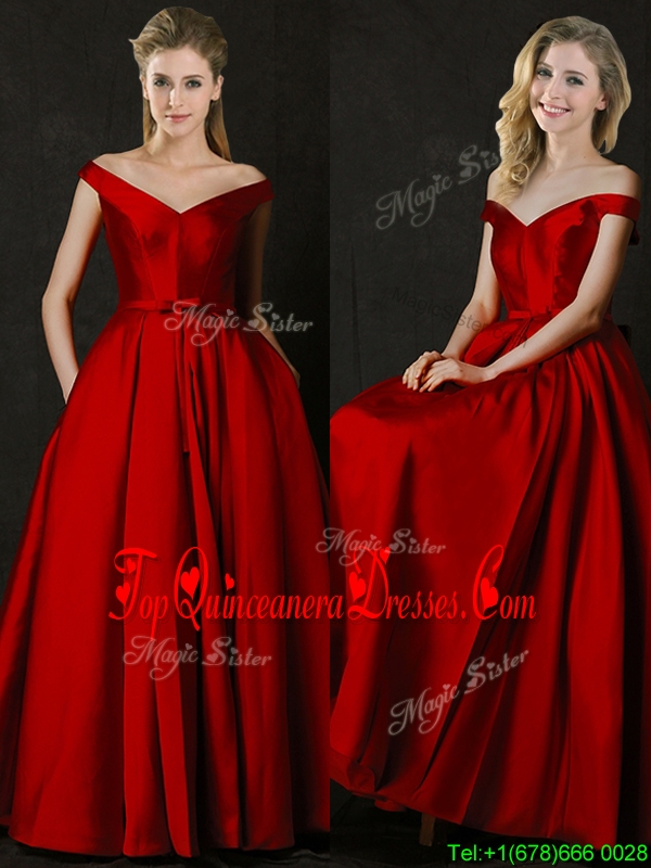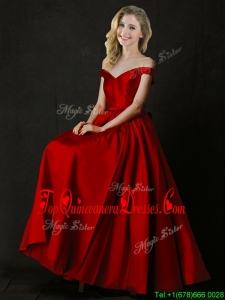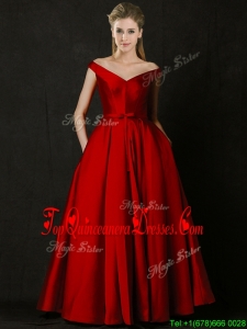 2016 Latest Bowknot Wine Red Long Dama Dress with Off the Shoulder