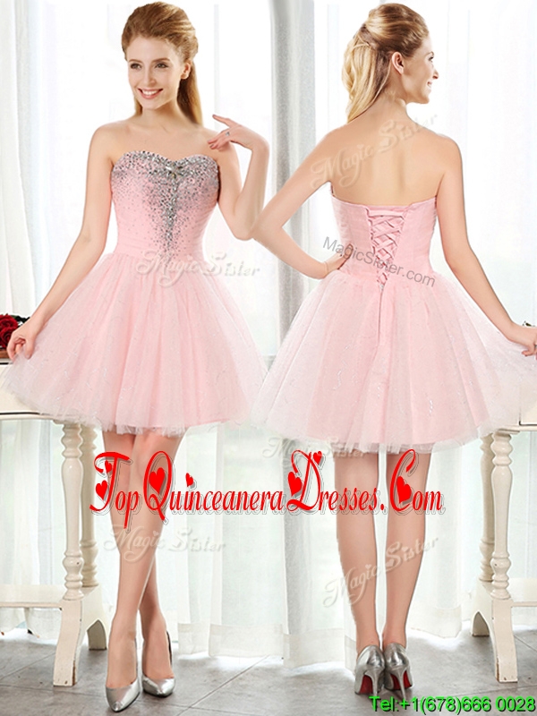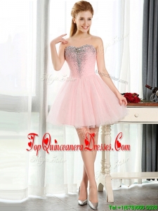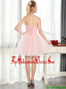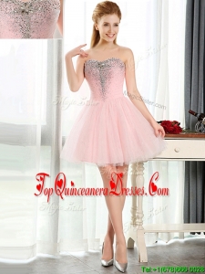 2016 Lovely Beaded and Sequined Short Dama Dress in Baby Pink