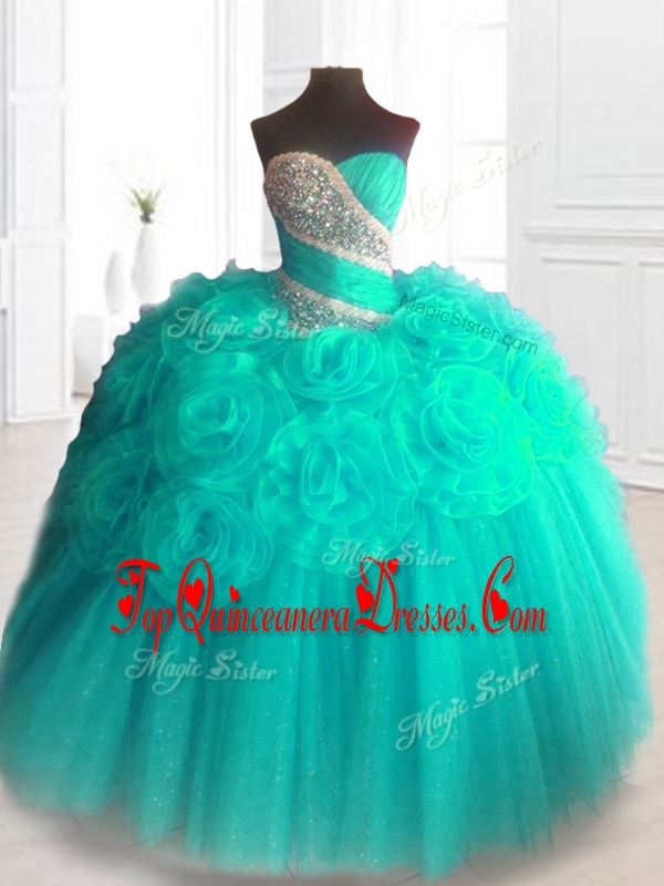 2016 Lovely Beading Custom Made Quinceanera Dresses with Hand Made Flowers