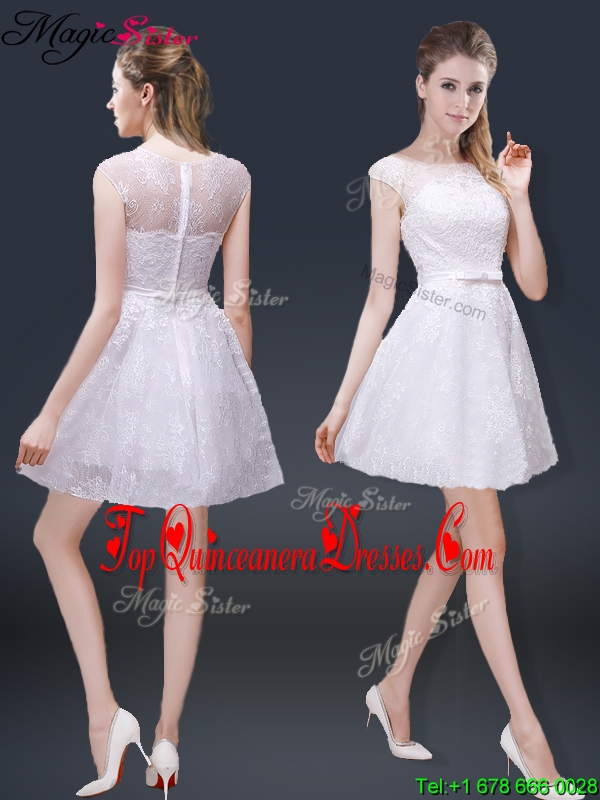 2016 Lovely Cap Sleeves Dama Dresses with with in Lace
