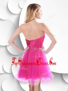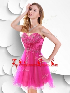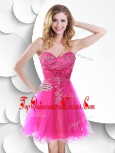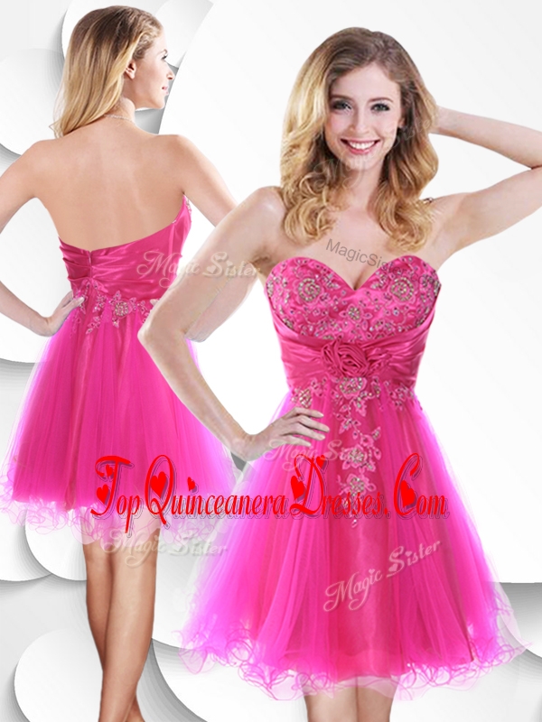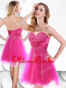 2016 Lovely Short Hot Pink Dama Dress with Beading and Hand Made Flowers