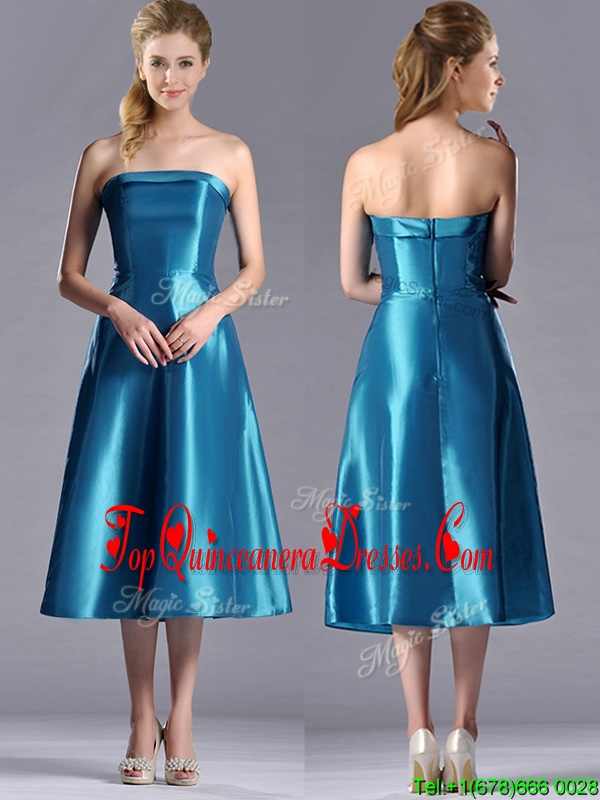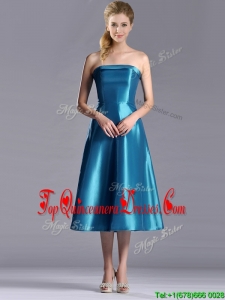 2016 Luxurious A Line Strapless Tea Length Dama Dress in Teal