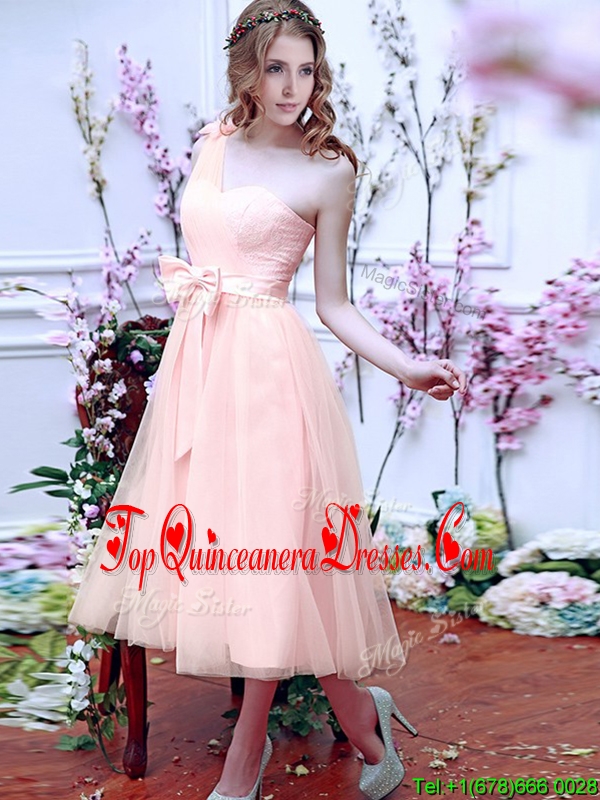 2016 Luxurious One Shoulder Dama Dress with Bowknot and Hand Made Flowers