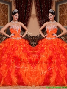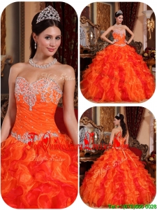 2016 Luxurious Orange Quinceanera Gowns with Appliques and Beading