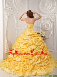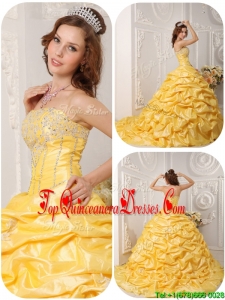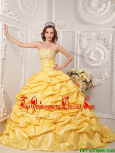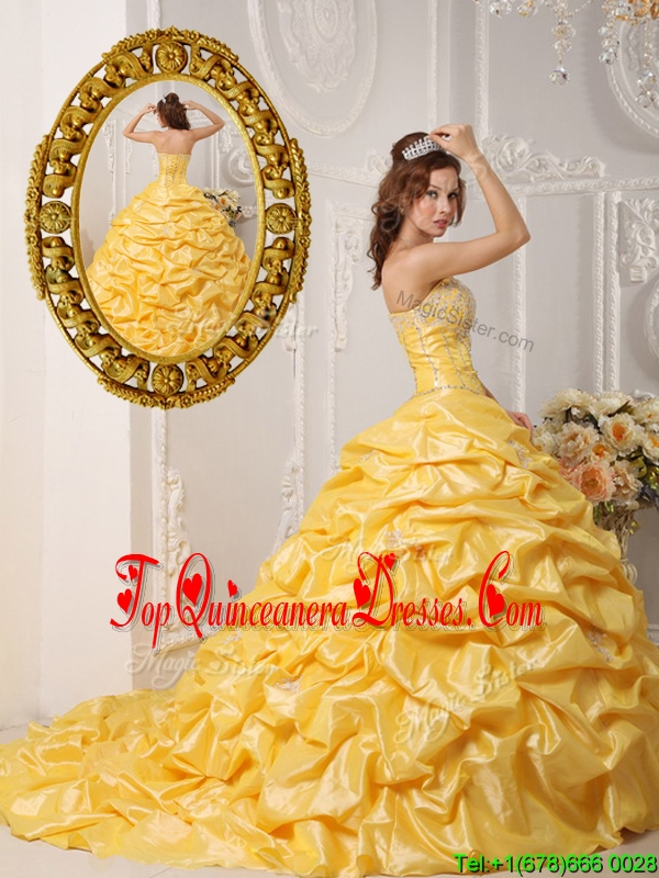 2016 Luxurious Pick Ups and Appliques Quinceanera Gowns with Court Train