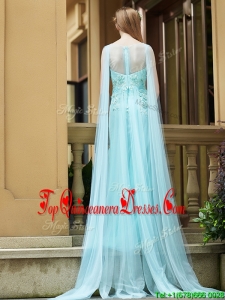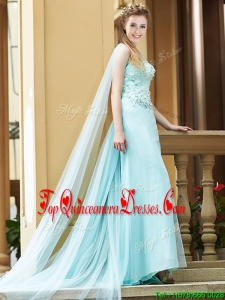 2016 Modern Bateau Applique Decorated Bodice Dama Dress with Watteau Train