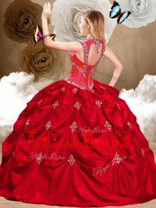 2016 Modern Red Sweet 16 Gowns with Appliques and Pick Ups