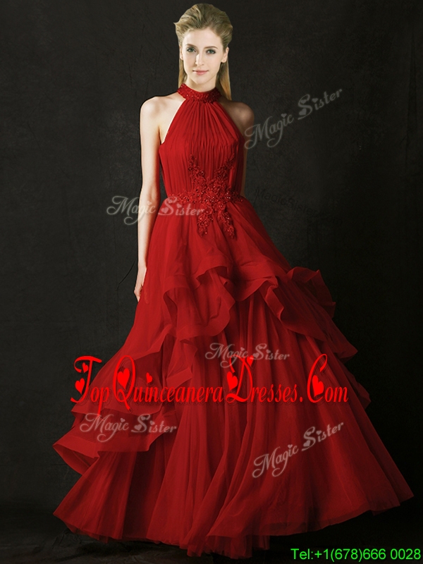 2016 Modest A Line Halter Top Tulle Dama Dress with Appliques