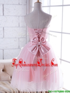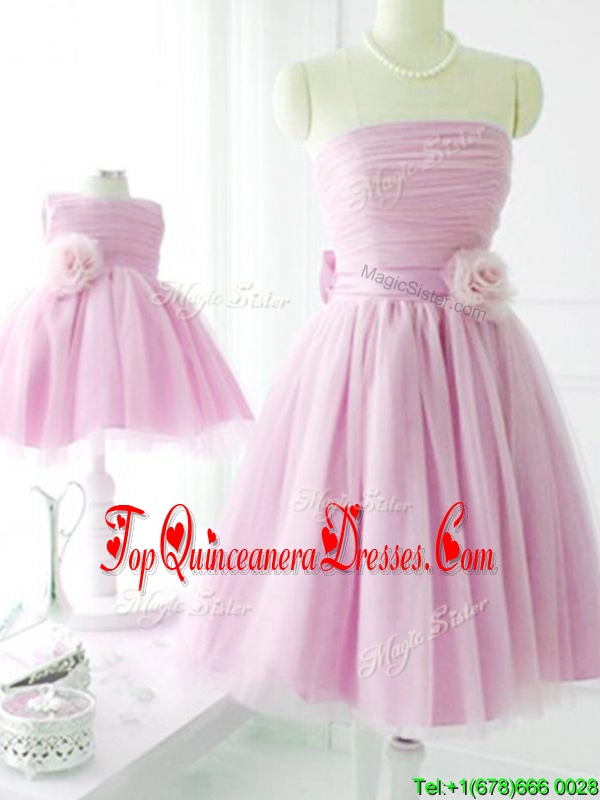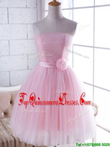 2016 New Arrivals Strapless Baby Pink Dama Dress with Handcrafted Flower