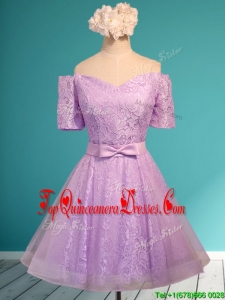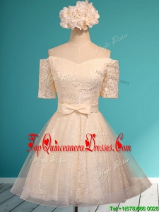 2016 New Style Off the Shoulder Short Sleeves Dama Dress with Bowknot