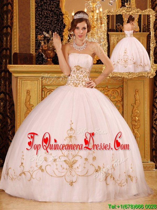 2016 New Style White Ball Gown Strapless Floor Length Quinceanera Dresses