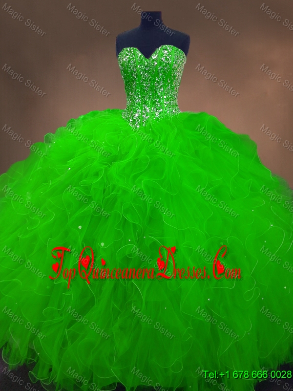 2016 Perfect Beaded Spring Green Sweet 16 Gowns with Ruffles