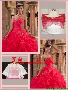 2016 Perfect Red Sweetheart Quinceanera Gowns with Ruffles