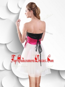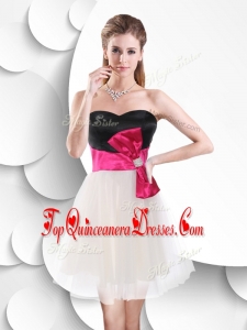 2016 Perfect Short White and Black Dama Dress with Bowknot