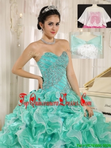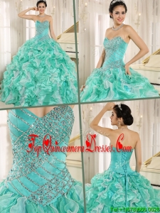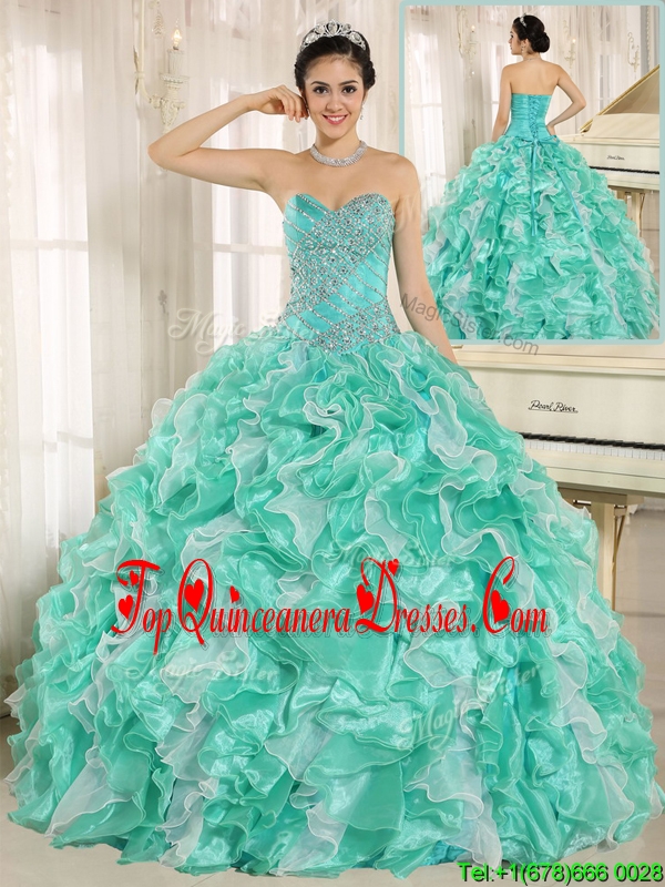 2016 Popular Beading and Ruffles Apple Green Quinceanera Dresses