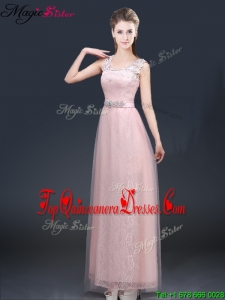 2016 Pretty Empire Scoop Dama Dresses with Lace and Appliques