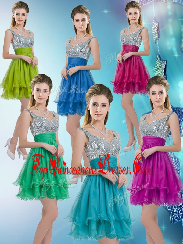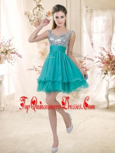 2016 Pretty Straps Short Dama Dresses with Sequins for Fall