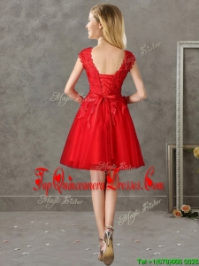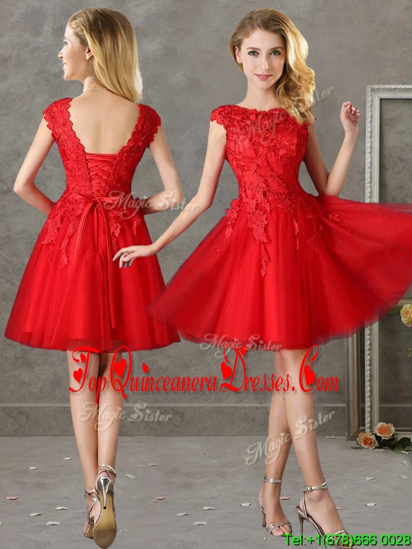 2016 Romantic Bateau Cap Sleeves Short Dama Dress with Lace