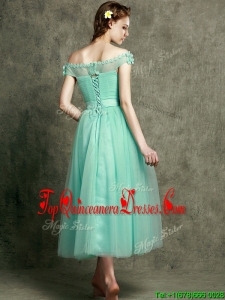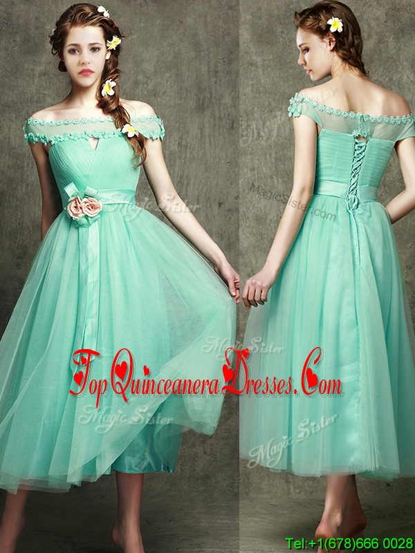 2016 Romantic Off the Shoulder Cap Sleeves Dama Dress with Appliques and Hand Made Flowers