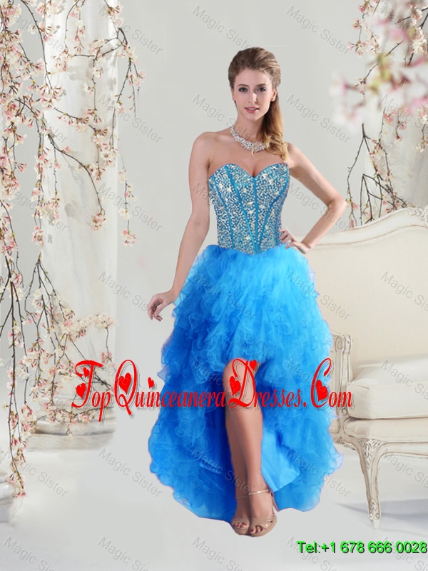 2016 Sophisticated High Low Sweetheart and Beaded Teal Dama Dresses