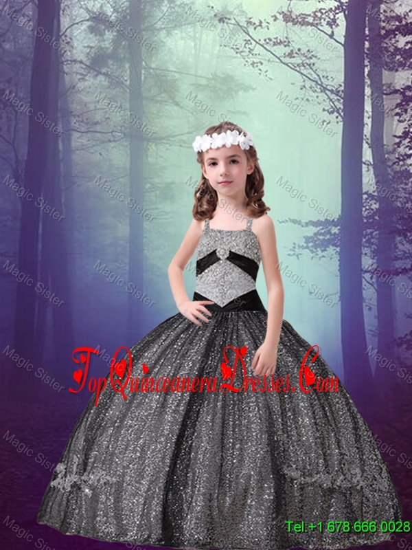 2016 Spring Perfect Straps Black Sequined Mini Quinceanera Dresses with Appliques