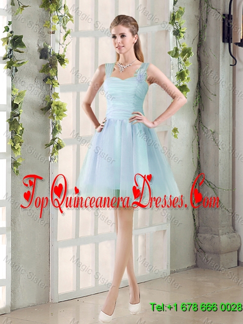 2016 Summer Fashionable A Line Straps Ruching Dama Dresses with Hand Made Flowers