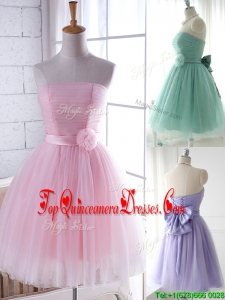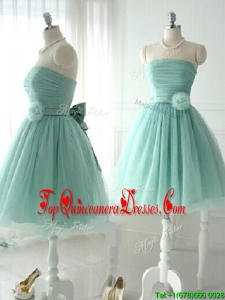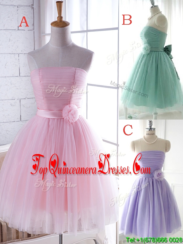 2016 Unique Strapless Tulle Short Dama Dress with Handcrafted Flower