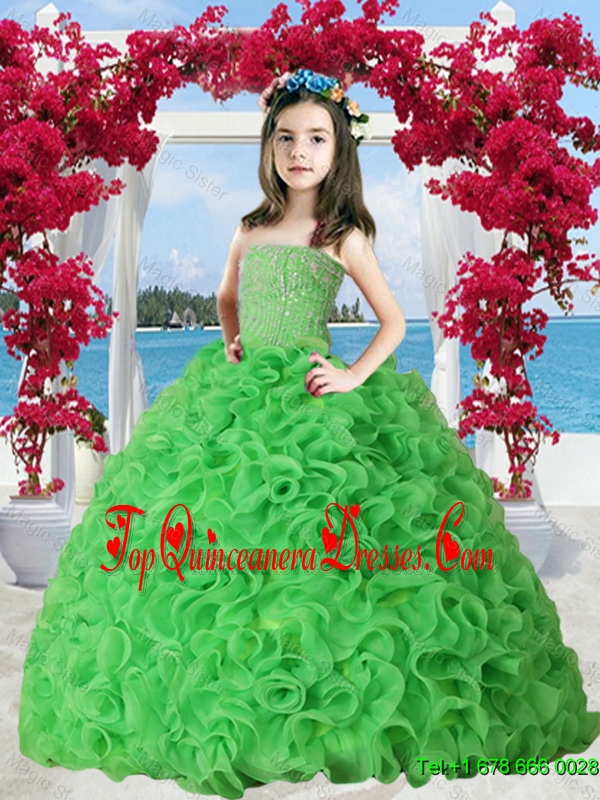 2016 Winter New Style Spring Green Organza Ruffles Little Girl Pageant Dress with Beading