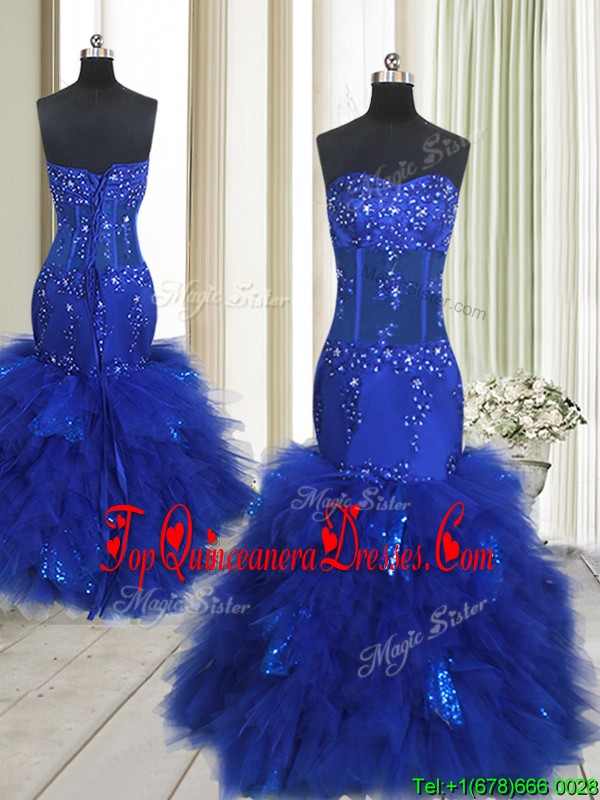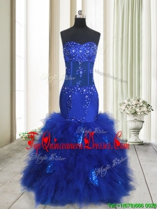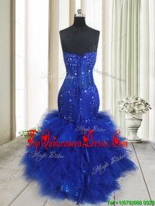 2017 Beautiful See Through Mermaid Beaded and Sequined Ruffled Dama Dress in Royal Blue