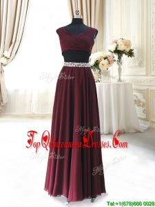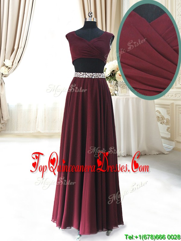 2017 Discount Two Piece Cap Sleeves Burgundy Dama Dress with Beaded Decorated Waist
